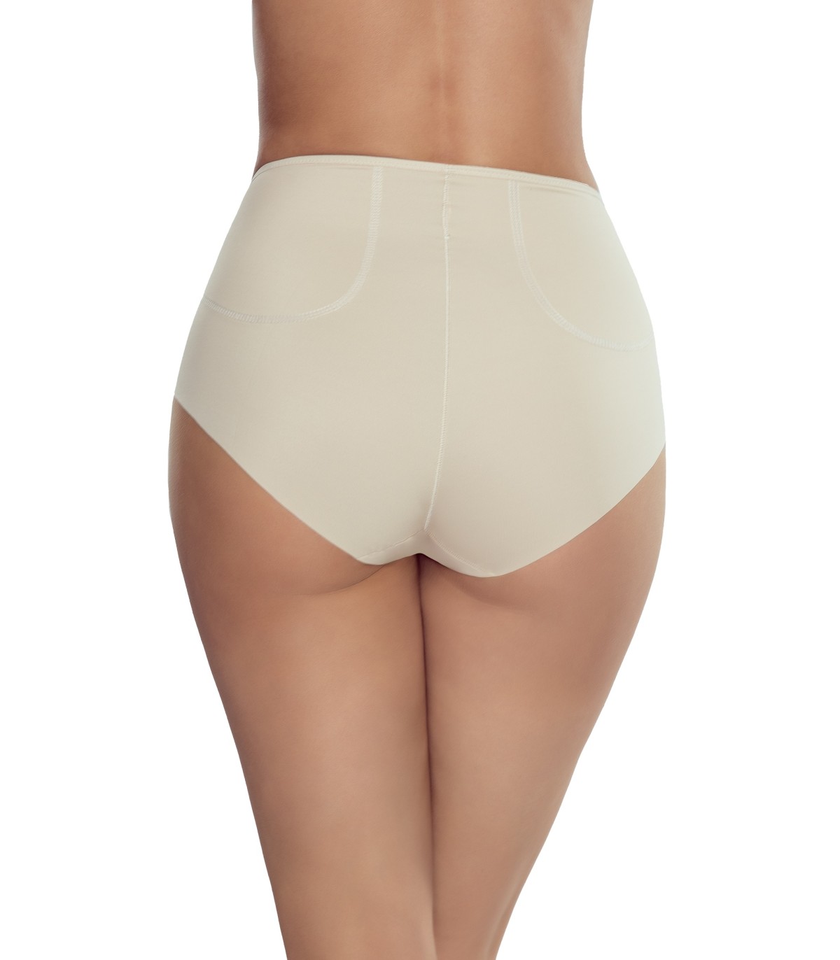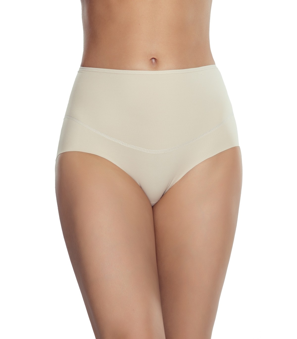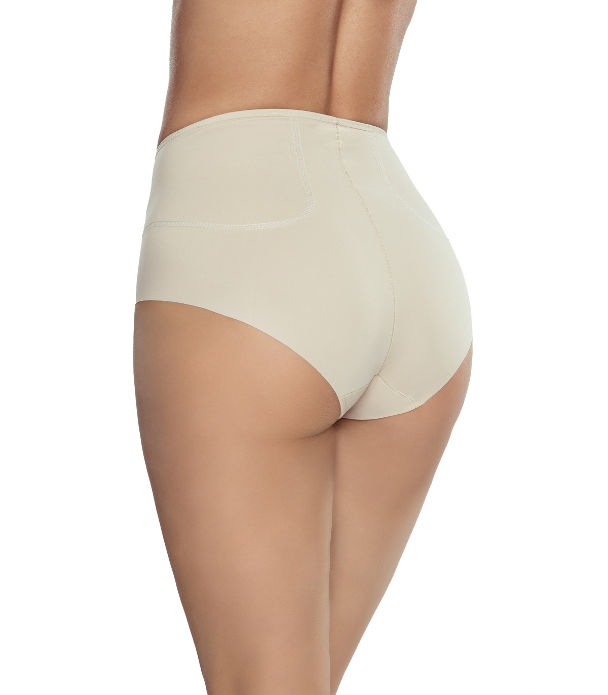 Bezszwowe wykończenie – niewidoczne pod ubraniem, gładki, miękki materiał – maksymalny komfort, podwójna warstwa z przodu – koryguje brzuch i boczki, wysoki stan z delikatną gumką – idealne dopasowanie, nieinwazyjne modelowanie sylwetki.