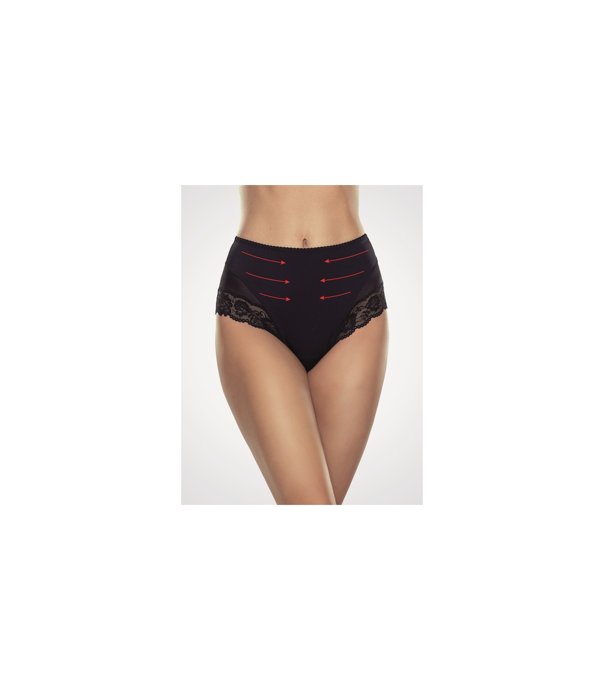 Tył oraz nogawki zdobi koronka o kwiatowym wzorze, wykończona w sposób, który nie uwiera i nie podrażnia skóry. Subtelne prześwity dodają lekkości i elegancji, zachowując przy tym funkcję modelującą.