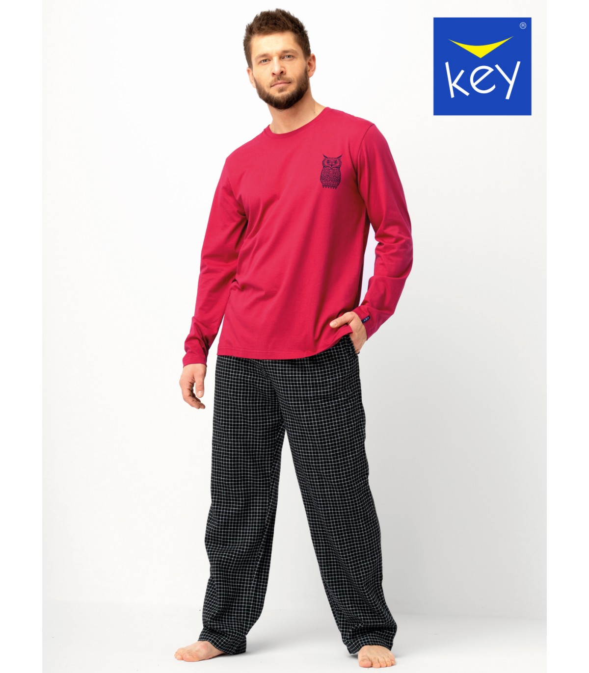 Piżama męska, bluza bawełniana, długi rękaw i długie, flanelowe spodnie.