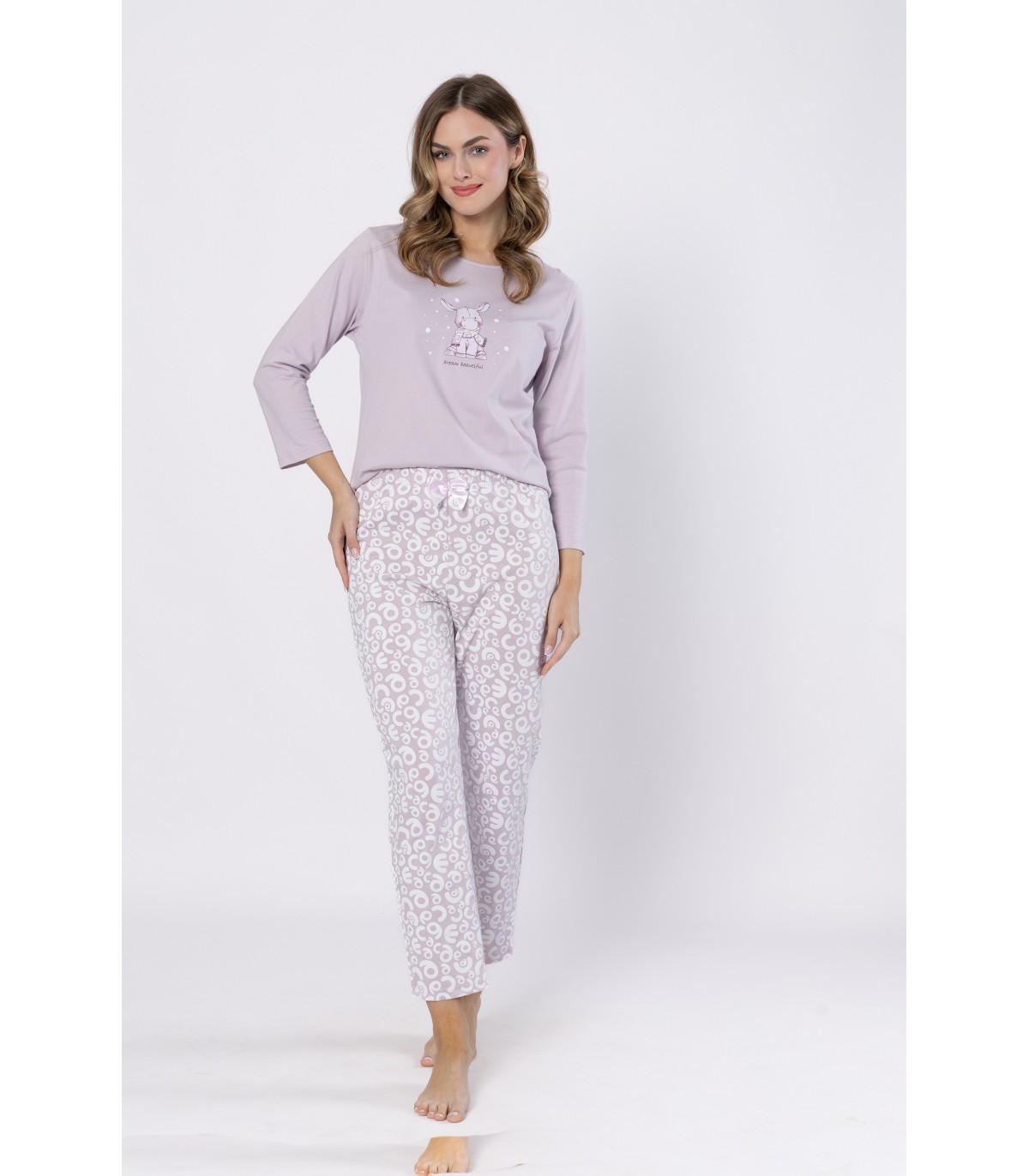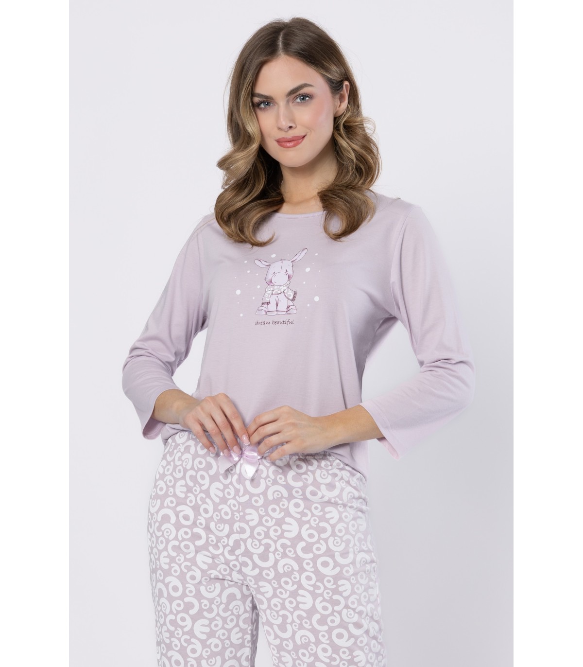 Piżama damska, bluzka z rękawem 7/8, spodnie 7/8.