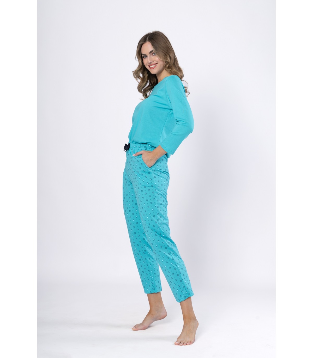 Piżama damska, bluzka z rękawem 7/8, spodnie 7/8.