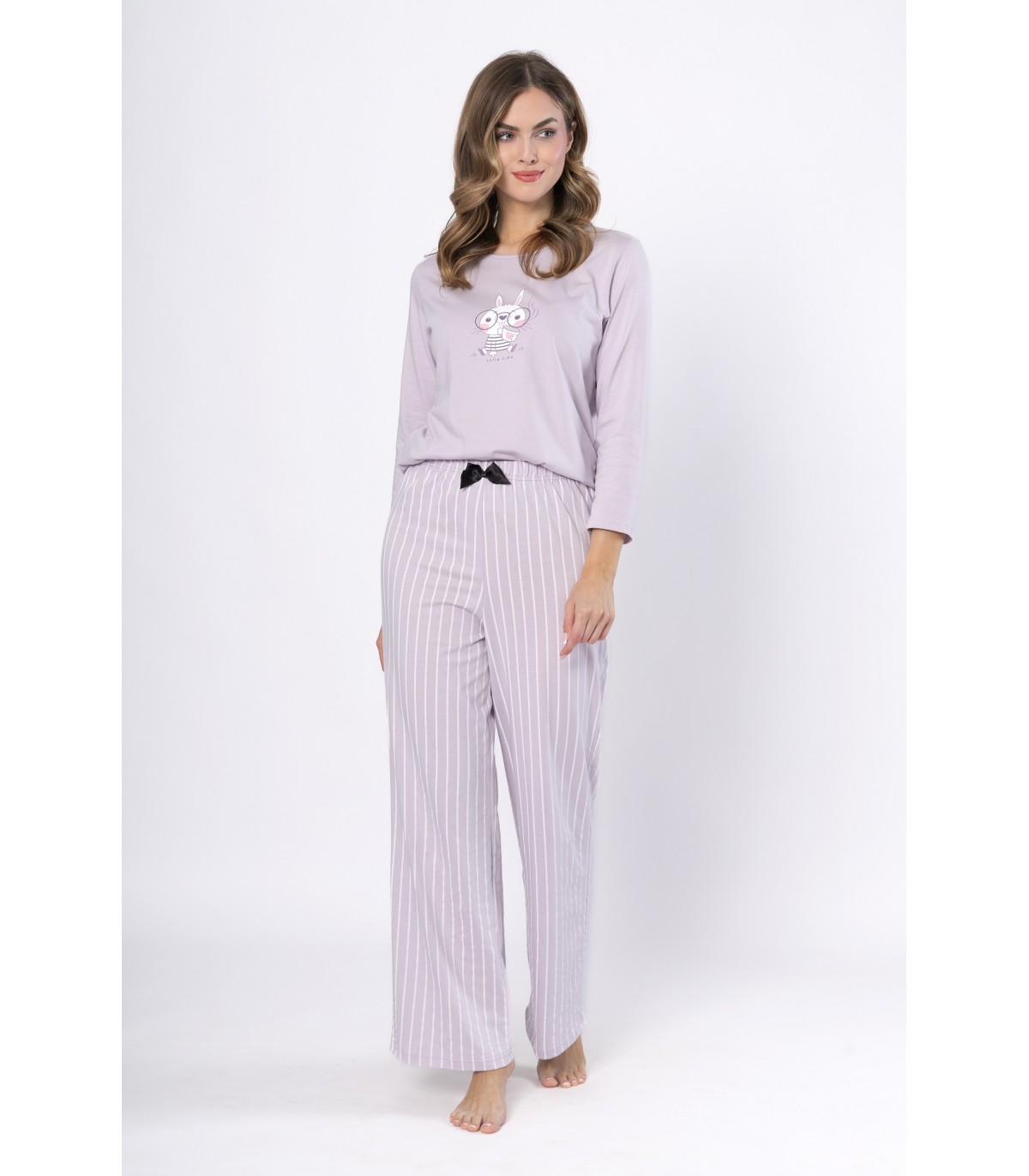 Piżama damska, bluzka z rękawem 7/8, spodnie długie.