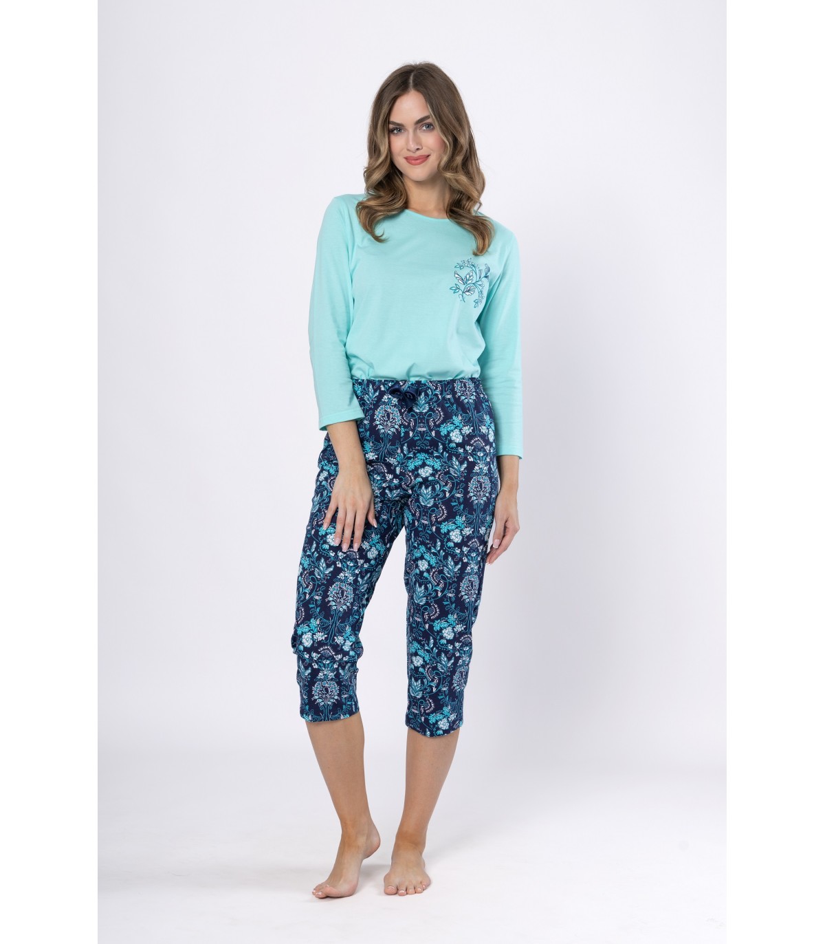 Piżama damska, bluzka z rękawem 7/8, spodnie 3/4.
