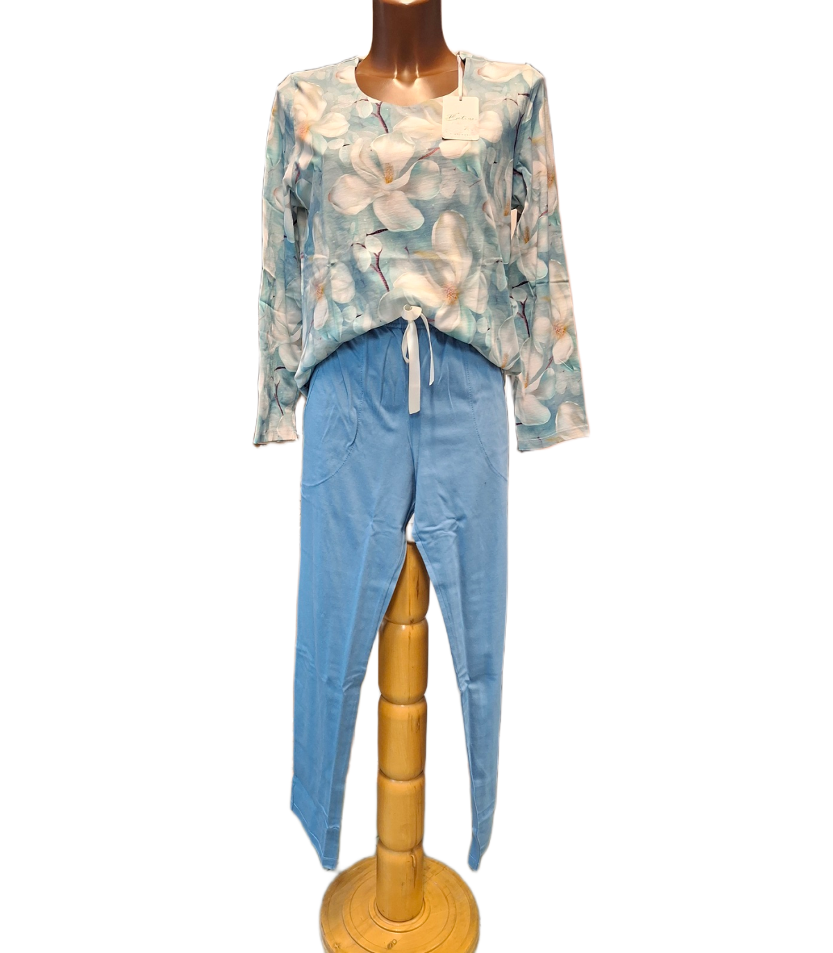 Piżama damska, długi rękaw, długie spodnie z kieszeniami.