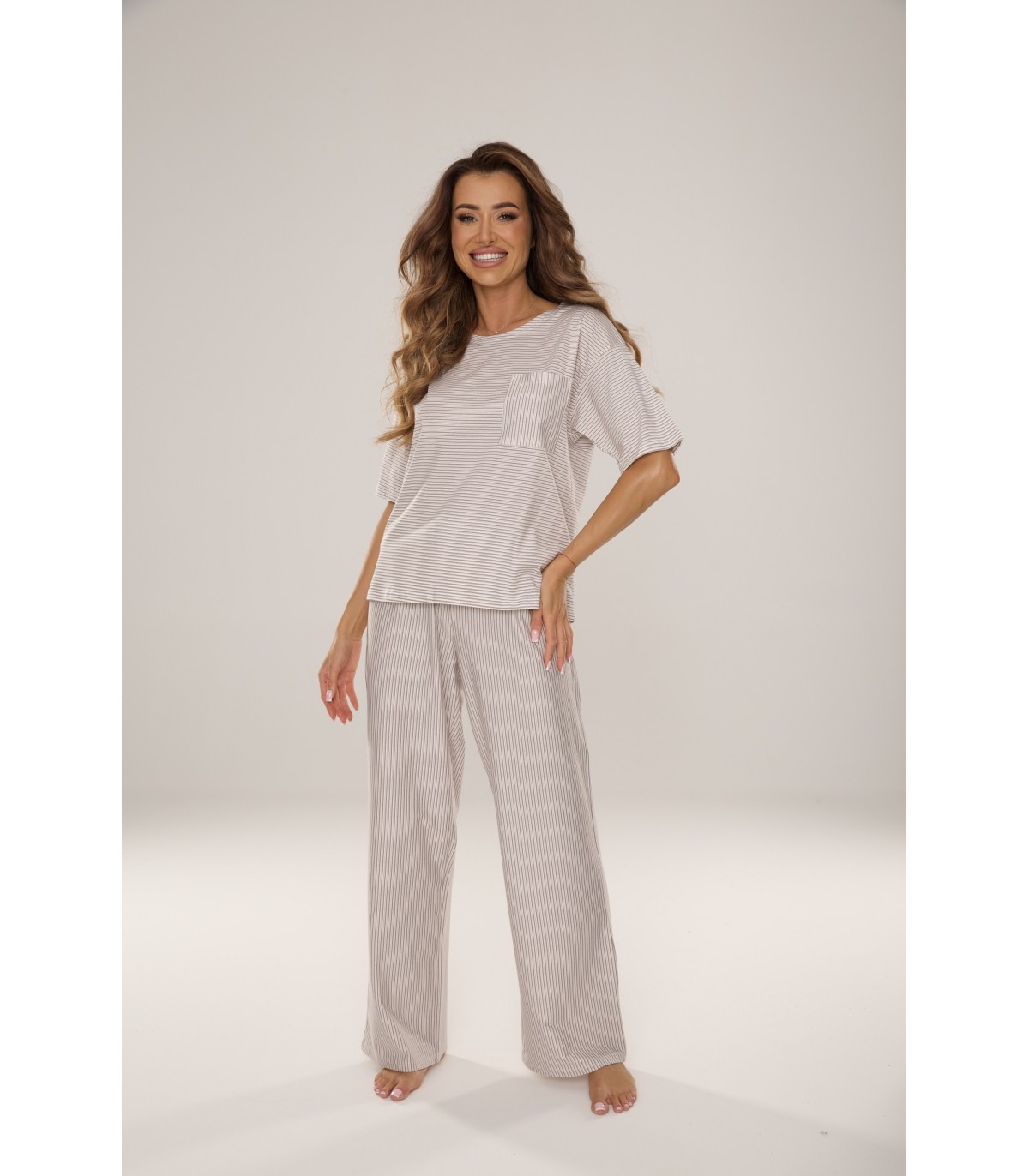 Piżama damska, krótki rękaw i długie spodnie.