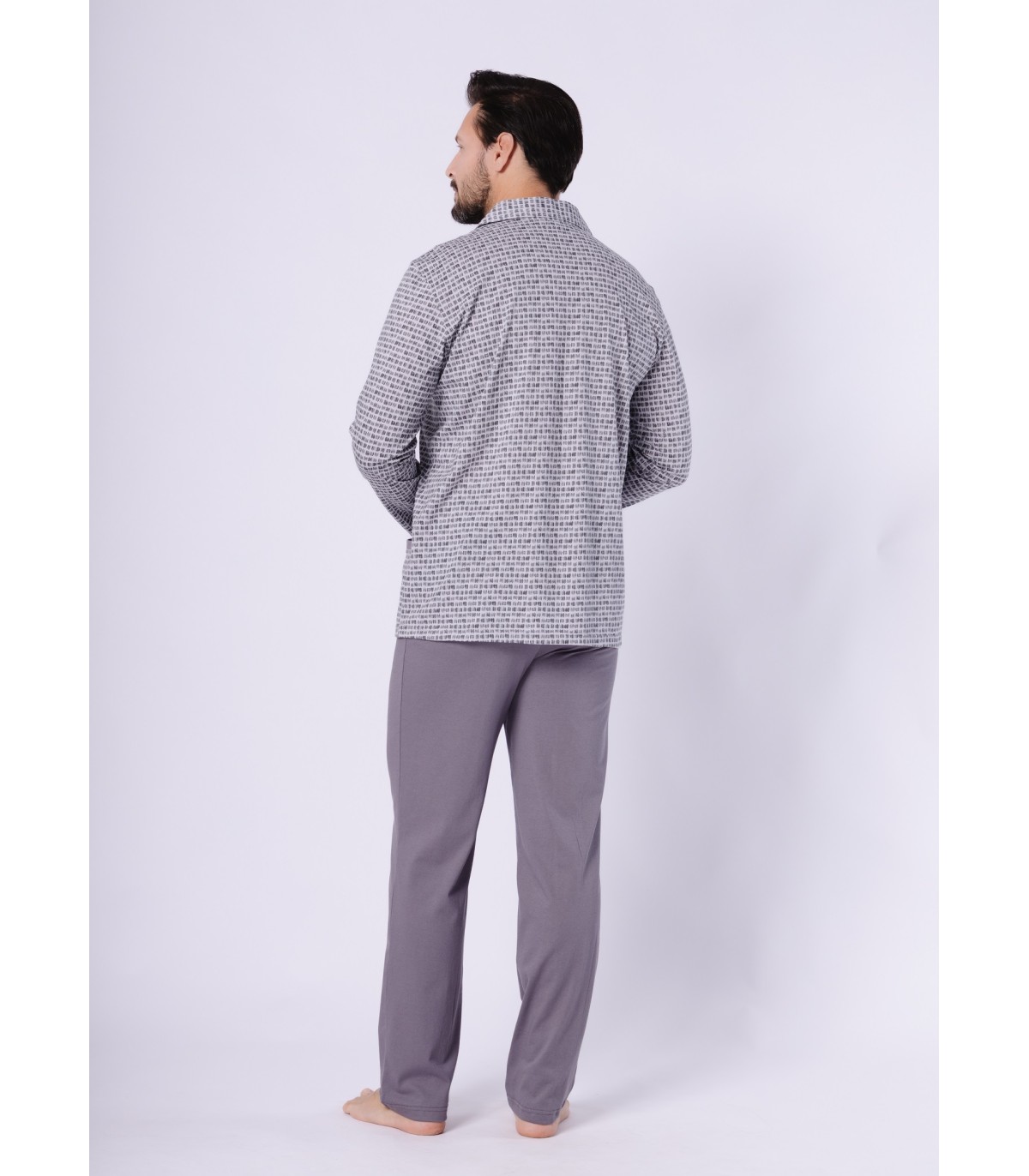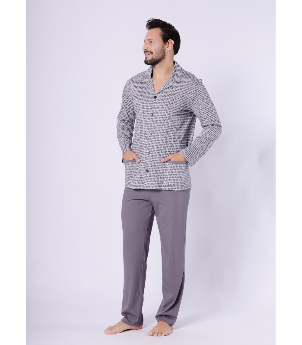 Piżama męska, rozpinana, długi rękaw i długie spodnie.